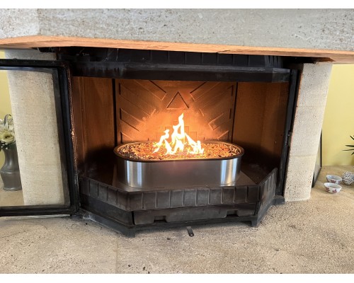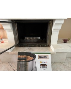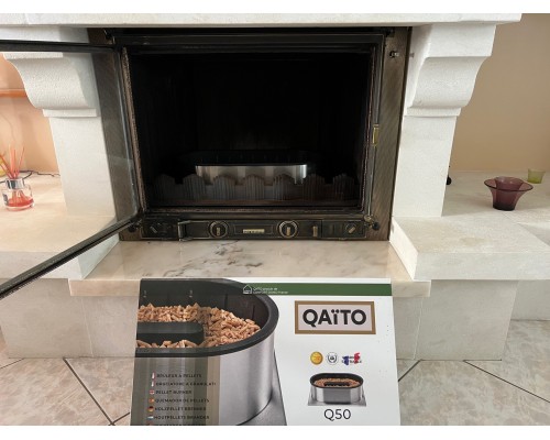 The QAÏTO Q 50 is a pellet burner for fireplaces (open or closed) and VERY large wood stoves, with a capacity of 7 to 7.5 kg of pellets, or approximately 4 logs measuring 50 cm and 10 cm in diameter.