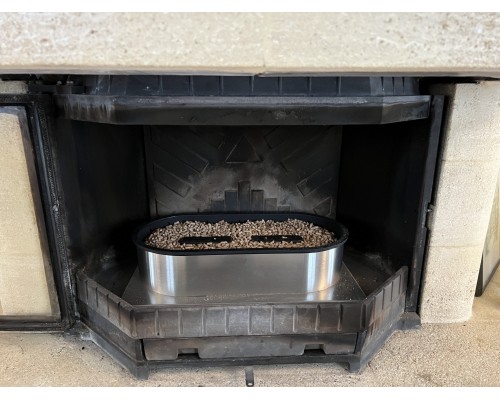 - (Reminder: you have to reload on 4/5 of the SURFACE, that is to say leave a small part of the burner without pellets so that the fresh air revives the embers and rekindles the pellets. You can however reload up to the top of the burner height).